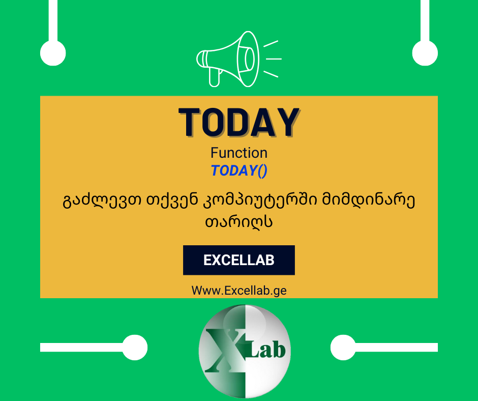 თუკი ექსელში დაწერთ ფორმულას Today, ფორმულის შედეგი იქნება დაწერის მომენტისათვის თქვენს კომპიუტერში არსებული თარიღი.