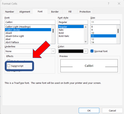 | Home | Font | Superscript | ![]() | უჯრაში არსებული/მონიშნული სიმბოლოებისთვის ხარისხის ეფექტს დაყენება |