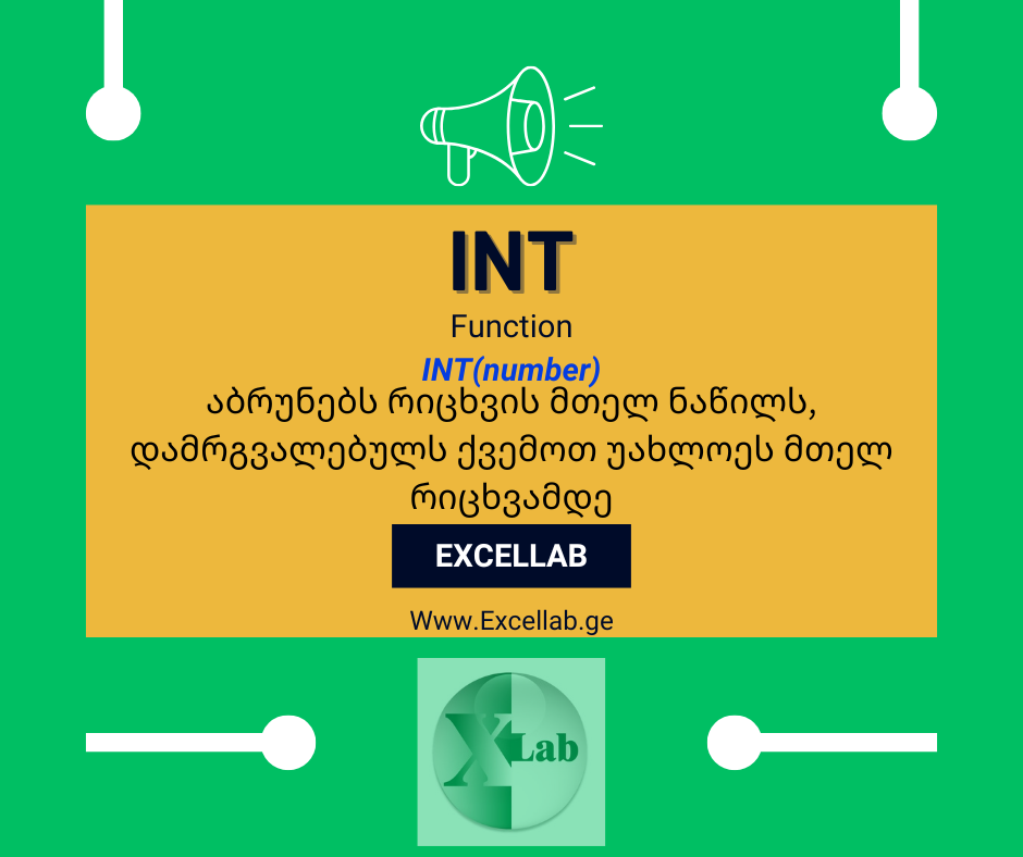 ფორმულის სახელი: INT ფორმულის ტიპი: მათემატიკური ფორმულის აღწერა: აბრუნებს რიცხვის მთელ ნაწილს, დამრგვალებულს ქვემოთ უახლოეს მთელ რიცხვამდე (მიუხედავად იმისა, დადებითია თუ უარყოფითი რიცხვი). ფორმულის მოწყობა: =INT(number) ფორმულის არგუმენტები: number – ნებისმიერი რიცხვი ან უჯრა, რომლისთვისაც გვინდა მივიღოთ მთელი ნაწილი. 🧮 …